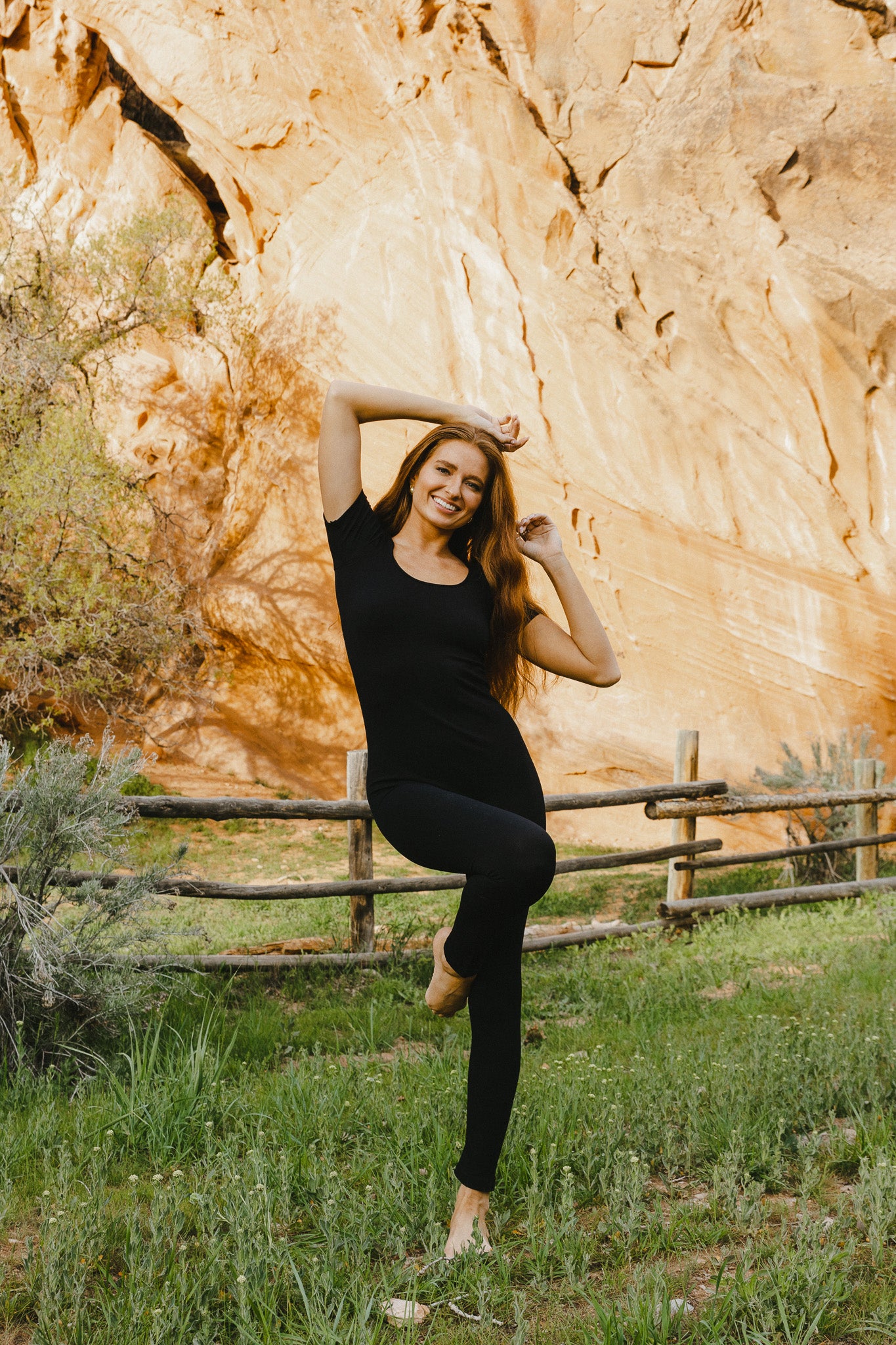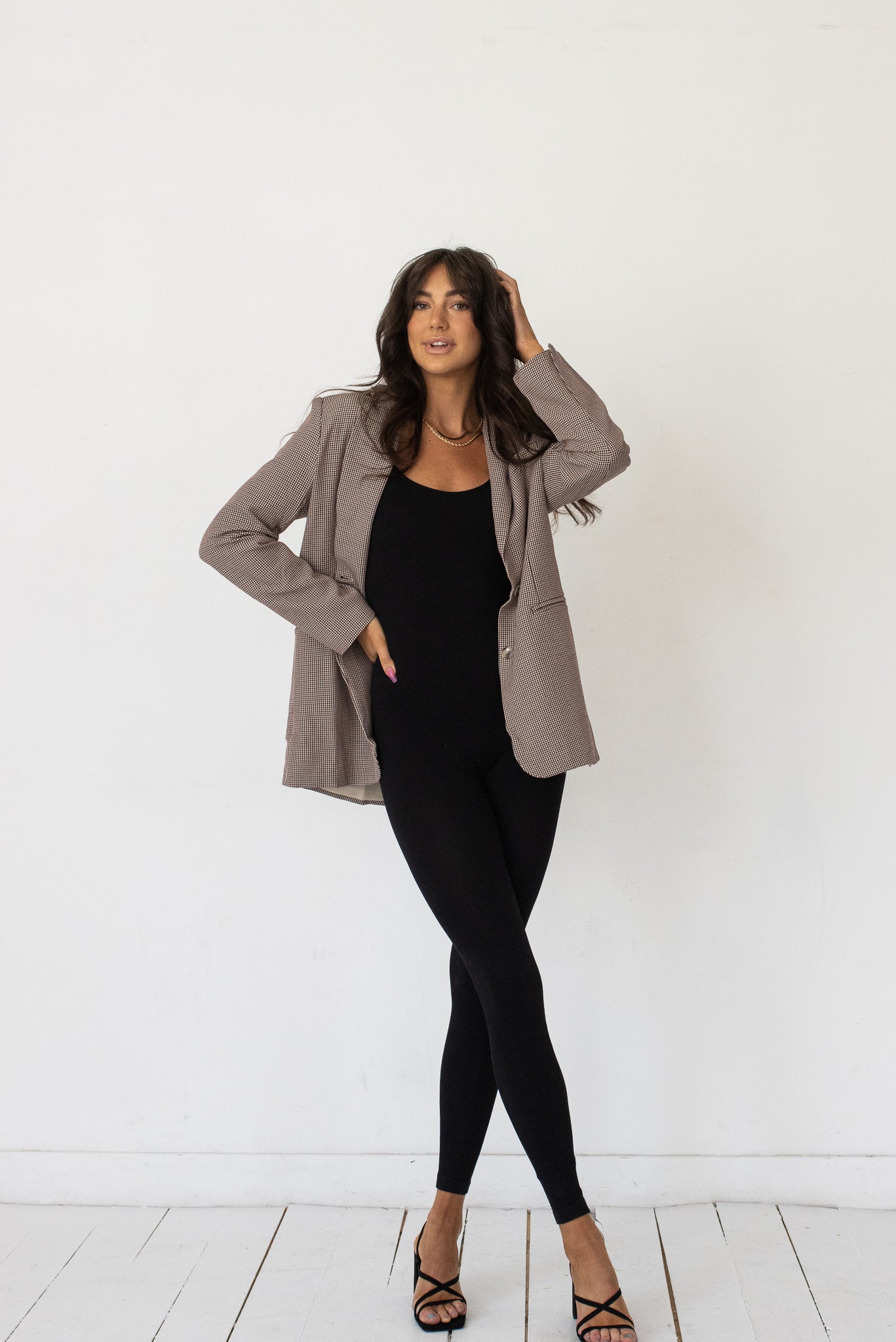 Our BEST SELLING LOML Romper now has a twin. You guys sold out the original romper X3 now, and theres no joke when we say this one will too. Here's why. The length is unbeatable. YET, its so light-weight and breathable. You can wear it in spring, summer, fall or winter. IT'LL still work!! You can wear it alone like this, with a cap and some sneakers, you can wear it to the gym, or the best part?! YOU CAN DRESS IT UP. Put our On-The-Go Blazer over it and you are all ready. We don't think we could ever let this romper trend go away. It's here to stay.