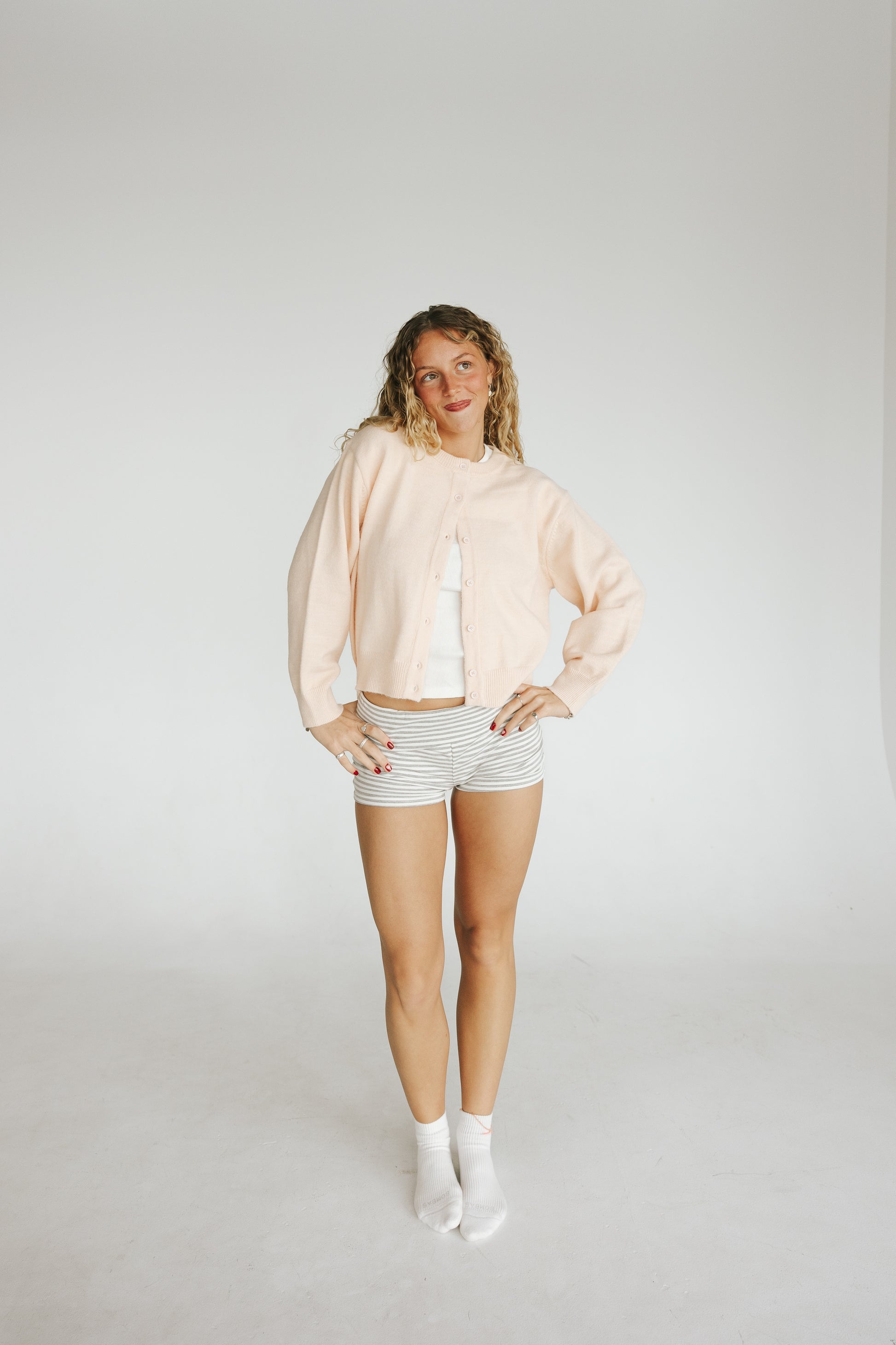 Embrace comfort and style with our ballerina pink cardigan. Crafted from a soft, lightweight fabric, this piece is perfect for layering throughout the seasons. The delicate pastel pink hue adds a touch of subtle femininity, making it ideal for both casual and dressed-up occasions. With its relaxed fit and classic design, this cardigan offers effortless elegance and warmth, while the fine-knit texture provides a smooth finish. Whether paired with jeans or a dress, it's a versatile wardrobe staple that adds a refreshing pop of color to any outfit.