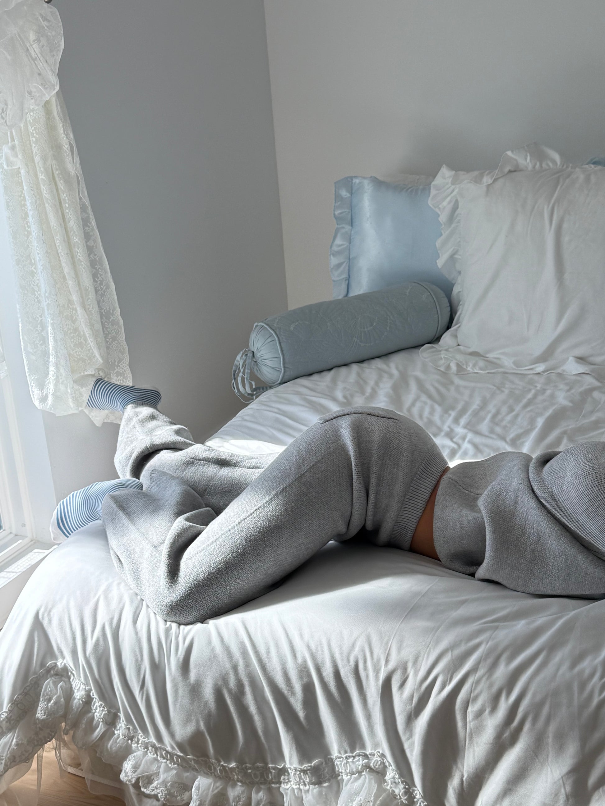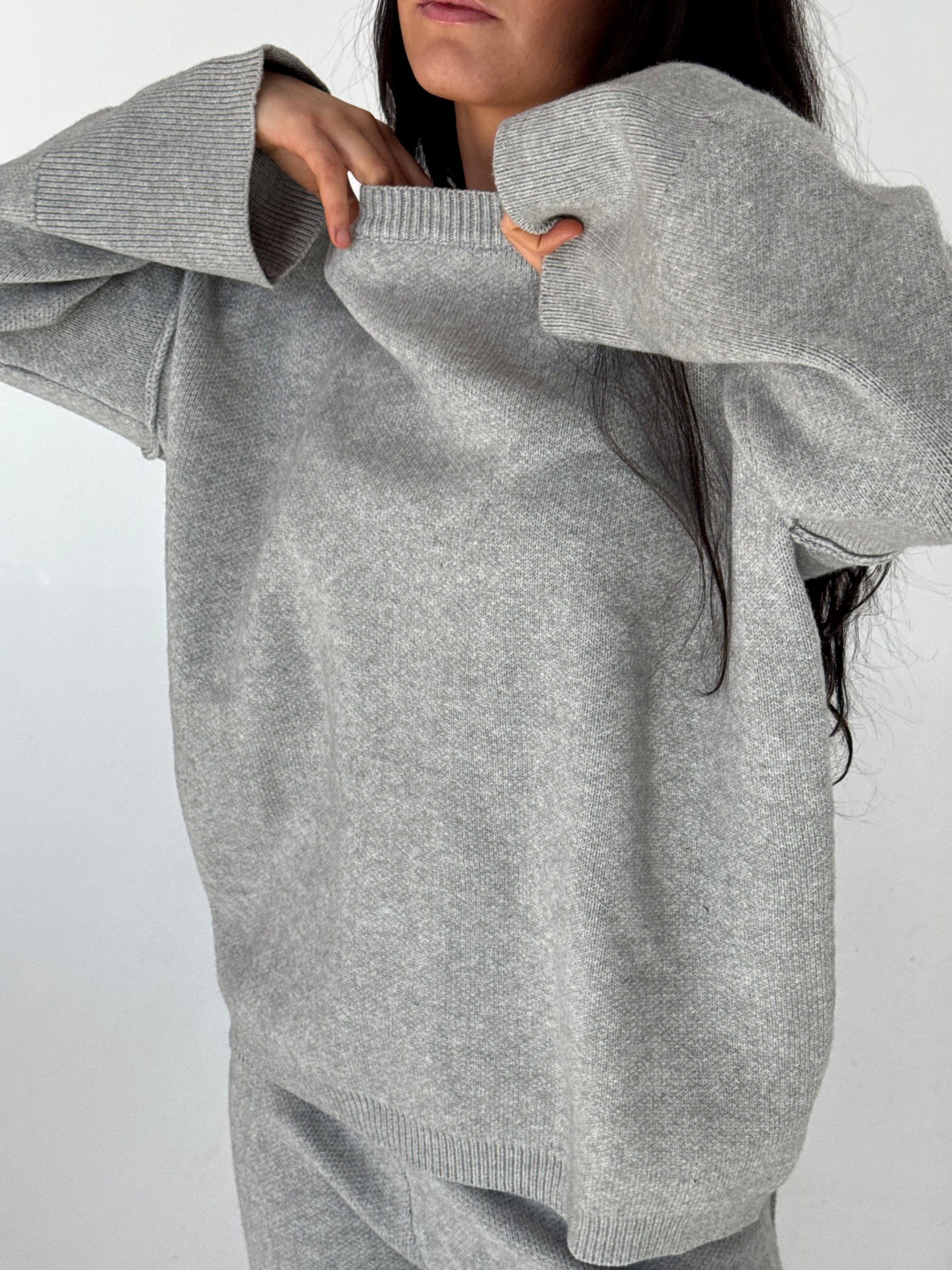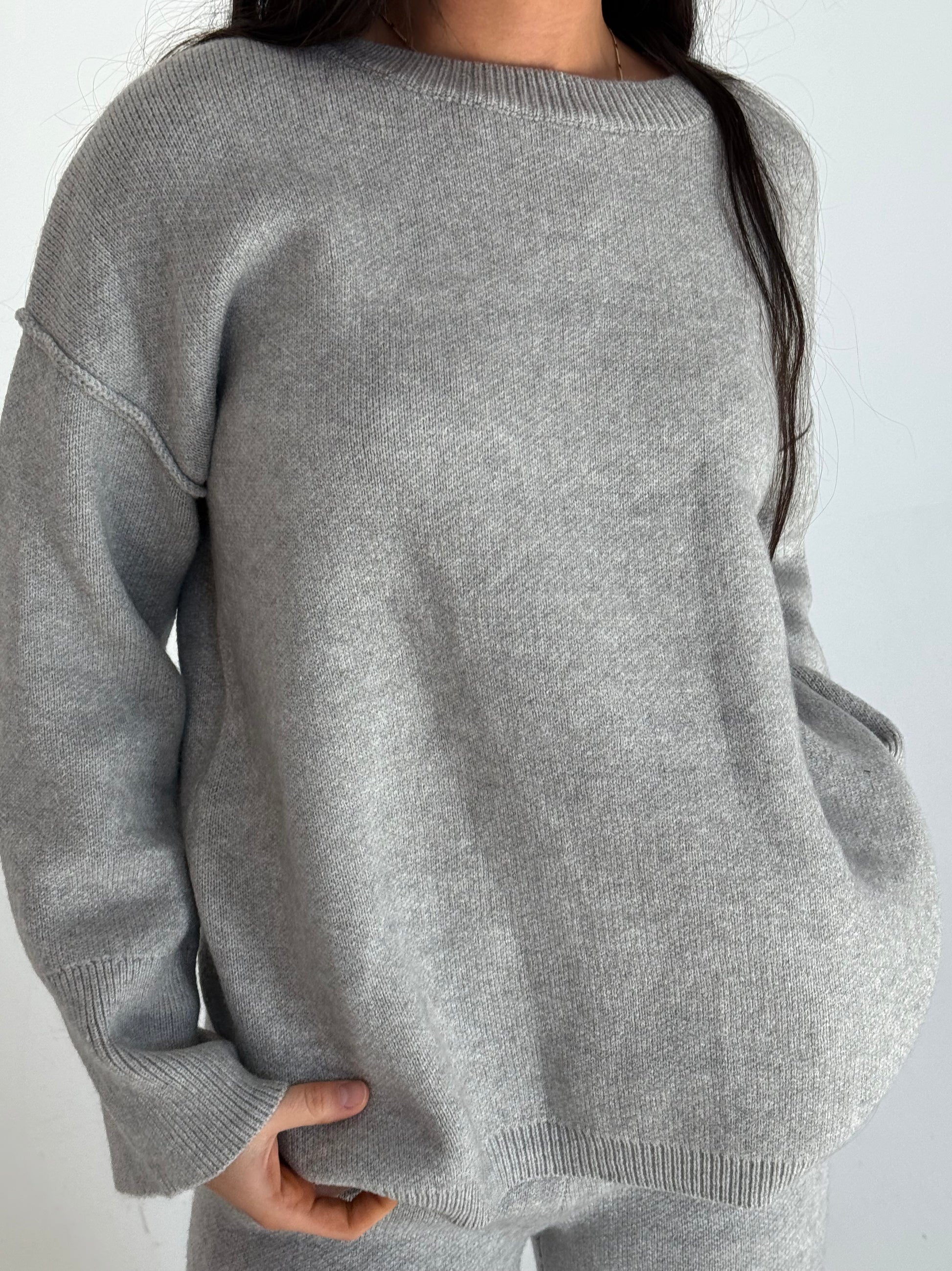 We wanted to bring a sweater set that would be versatile to go out or stay in, be thick to keep you warm, stretch with your body and a color to go with options so we bring you our grey cloud, meeting each expectation!