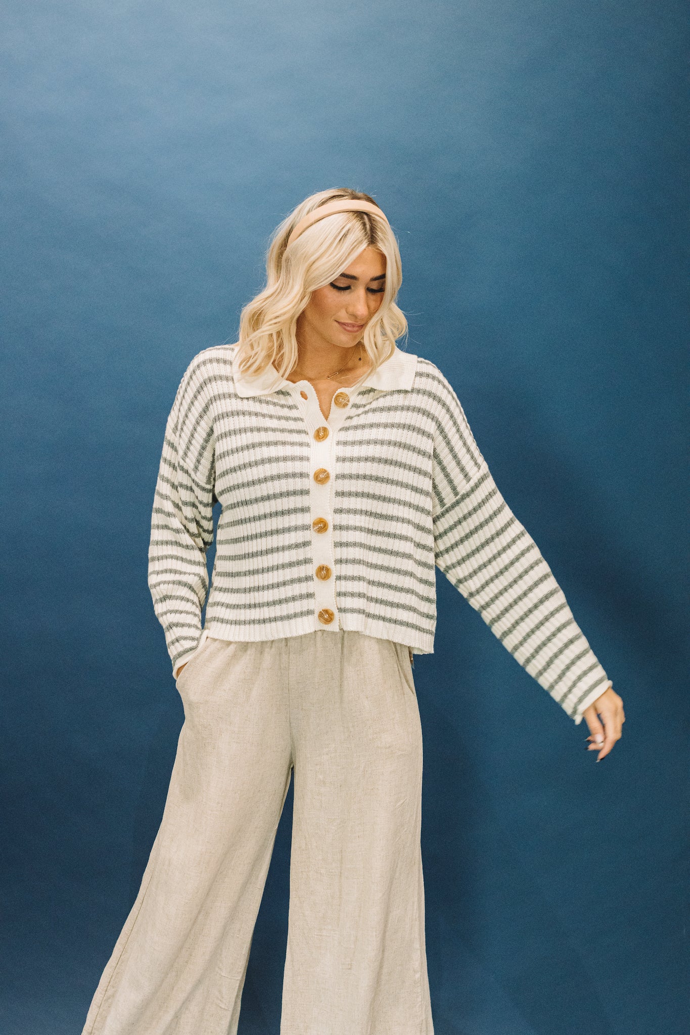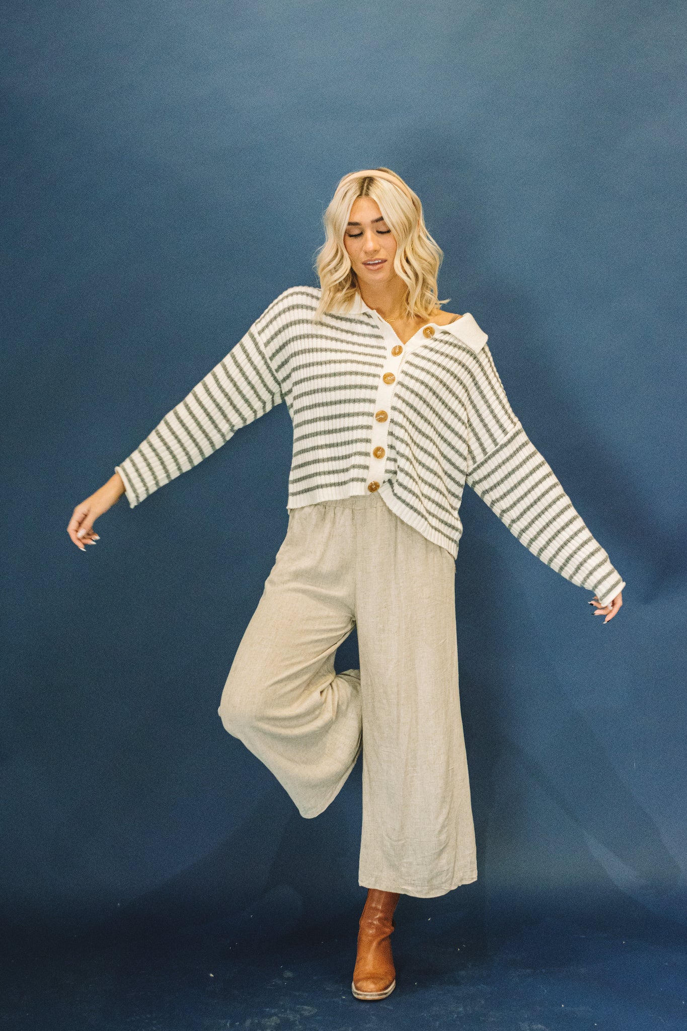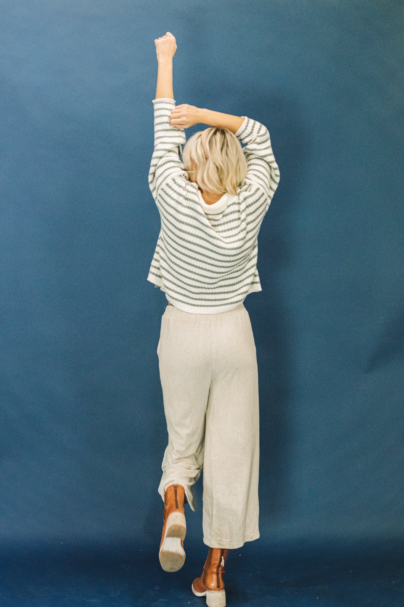 - Fabric: 55% Acrylic, 45% Cotton | Striped ribbed knit sweater |