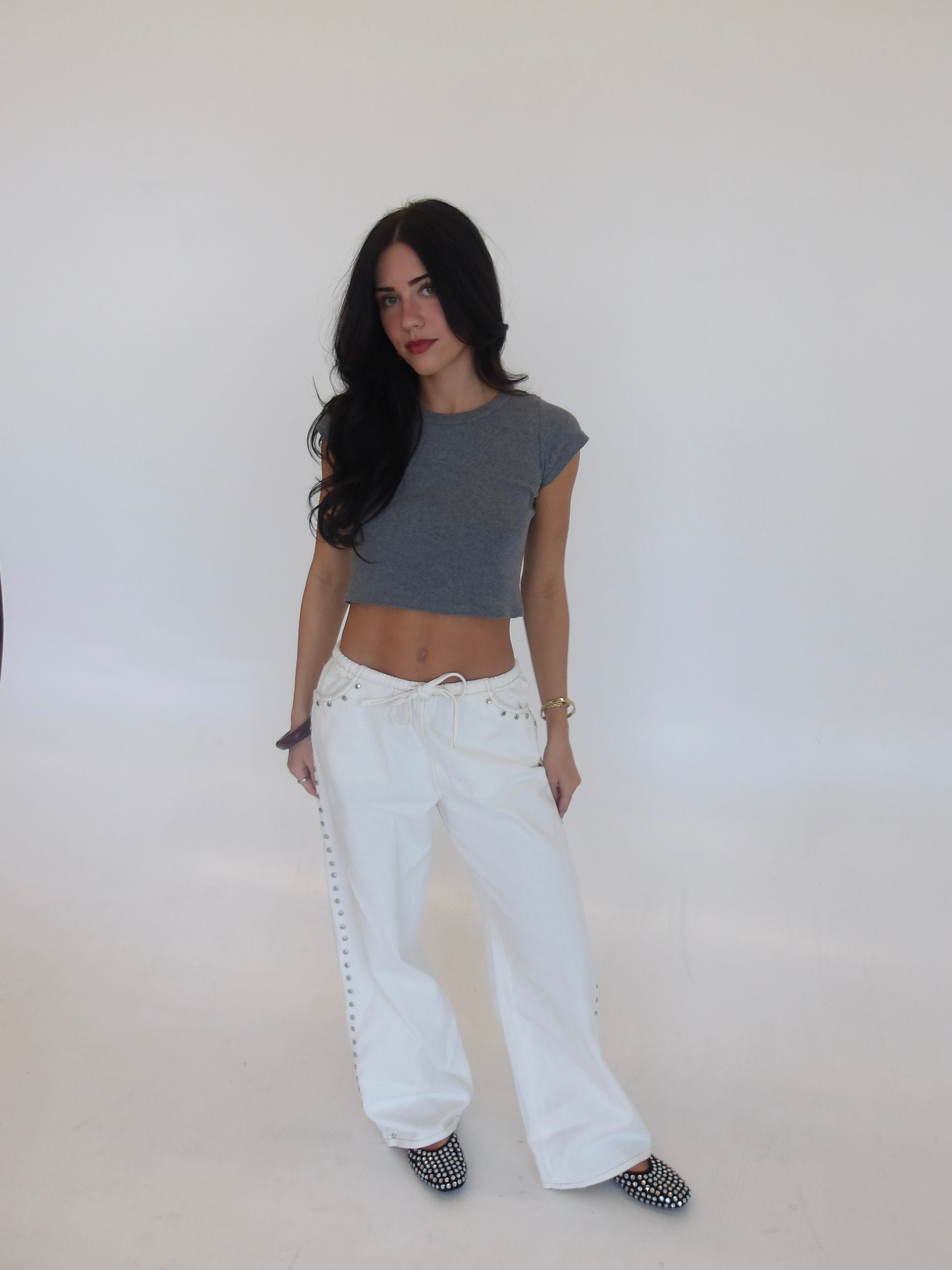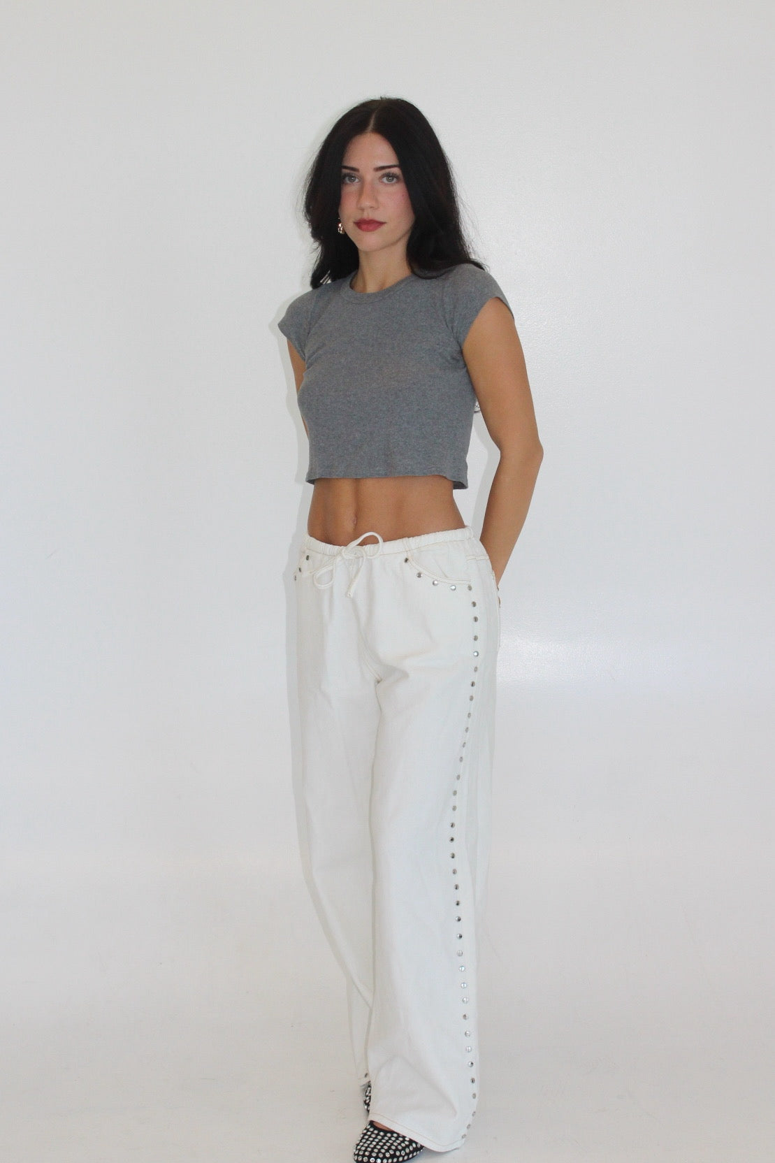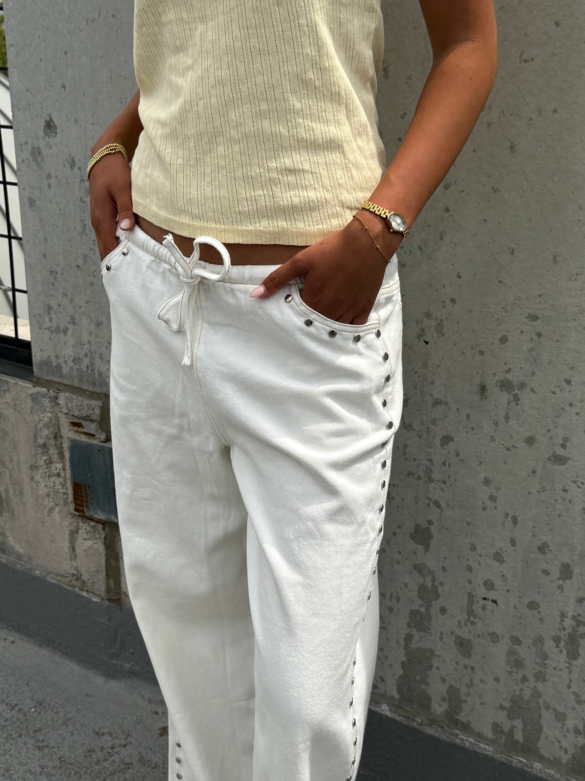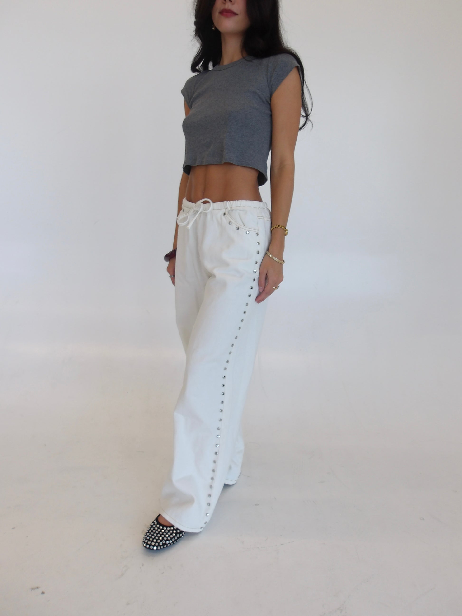 We don't do jeans unless they feel like sweats. Comfi, baggy, adjustable drawstring, unique studs along the pants. Our gift to everyday wear!